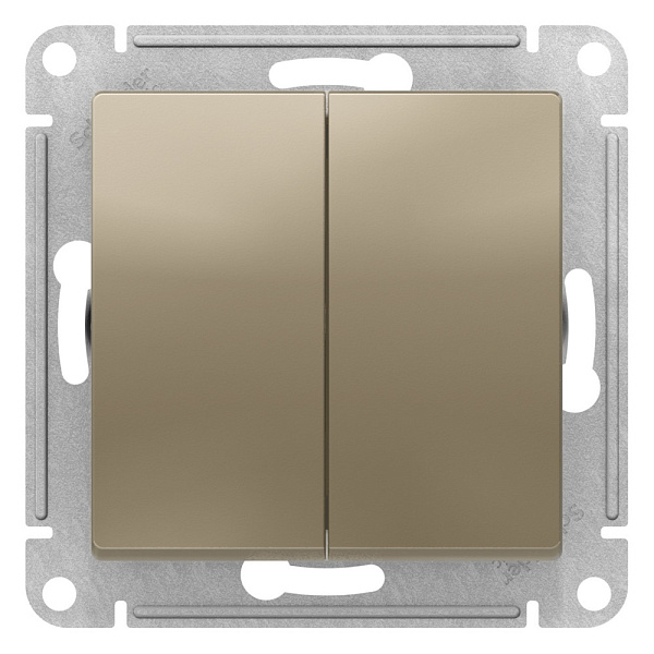 Механизм Systeme Electric (ранее Schneider Electric) серии AtlasDesign в цвете шампань переключателя 2-клавишного перекрёстного подходит для сетей 250 В, на ток 10 А.