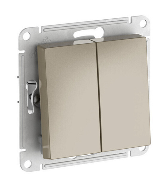 Механизм с быстрозажимными клеммами Systeme Electric (ранее Schneider Electric) серии AtlasDesign в цвете шампань 2-клавишного переключателя подходит для сетей 250 В, на ток 10 А.
