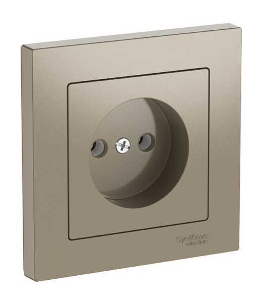 Механизм с быстрозажимными клеммами розетки без заземления в сборе Systeme Electric (ранее Schneider Electric) серии AtlasDesign в цвете шампань подходит для сетей 250 В, на ток 16 А.