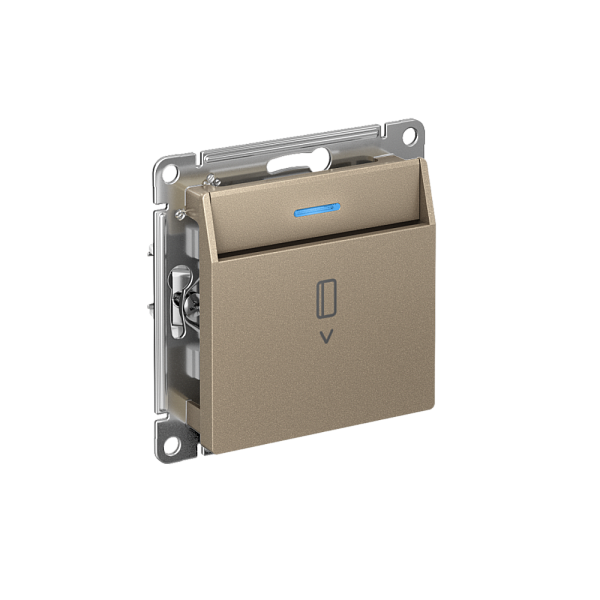 Механизм выключателя карточного с подсветкой Systeme Electric (ранее Schneider Electric) серии AtlasDesign в цвете шампань подходит для сетей 250 В, на ток 10 А.