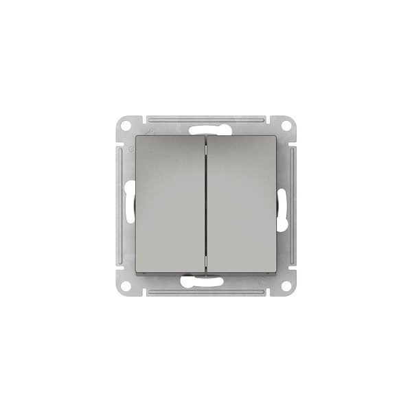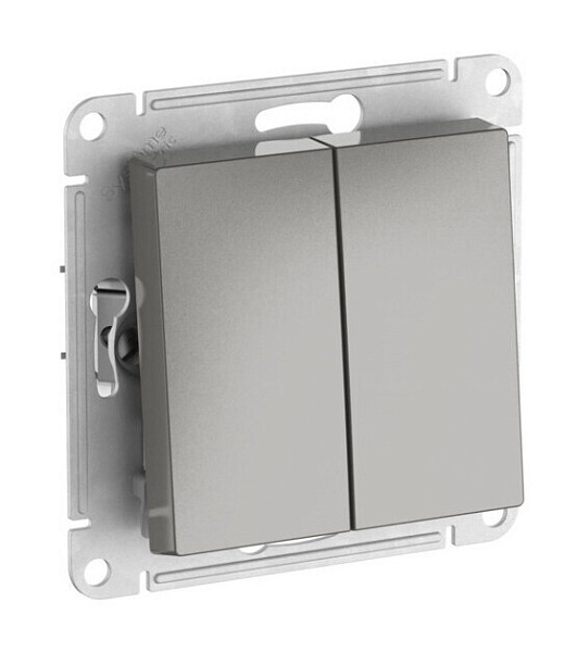 Механизм с быстрозажимными клеммами Systeme Electric (ранее Schneider Electric) серии AtlasDesign в цвете сталь 2-клавишного переключателя подходит для сетей 250 В, на ток 10 А.