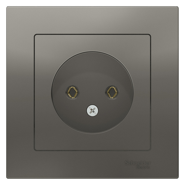 Розетка в сборе Systeme Electric (ранее Schneider Electric) серии AtlasDesign в цвете сталь одинарная без заземления и без шторок подходит для сетей 250 В, на ток 16 А.