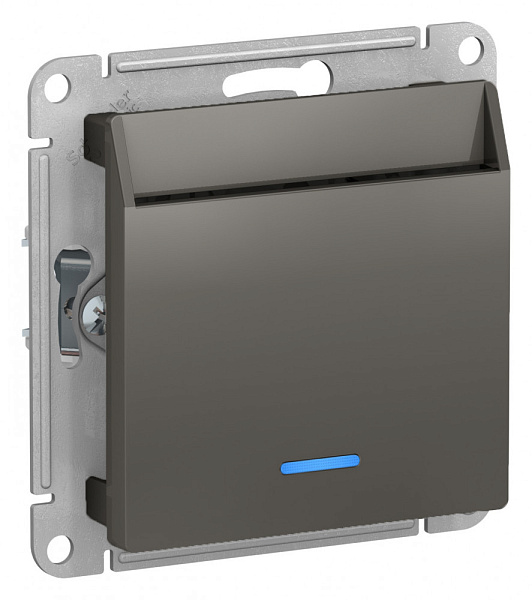 Выключатель Systeme Electric (ранее Schneider Electric) серии AtlasDesign в цвете сталь карточный подходит для сетей 250 В, на ток 10 А.