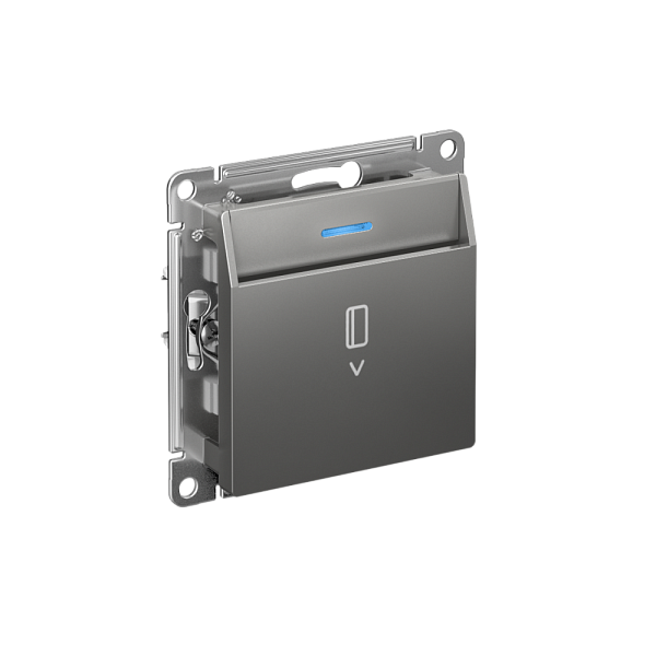 Механизм выключателя карточного с подсветкой Systeme Electric (ранее Schneider Electric) серии AtlasDesign в цвете сталь подходит для сетей 250 В, на ток 10 А.