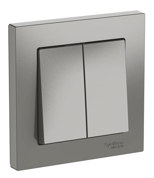 Механизм с быстрозажимными клеммами Systeme Electric (ранее Schneider Electric) серии AtlasDesign в цвете сталь 2-клавишного выключателя в сборе подходит для сетей 250 В, на ток 10 А.