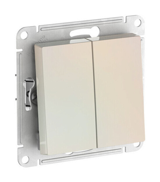 Механизм с быстрозажимными клеммами Systeme Electric (ранее Schneider Electric) серии AtlasDesign в цвете жемчуг 2-клавишного переключателя подходит для сетей 250 В, на ток 10 А.