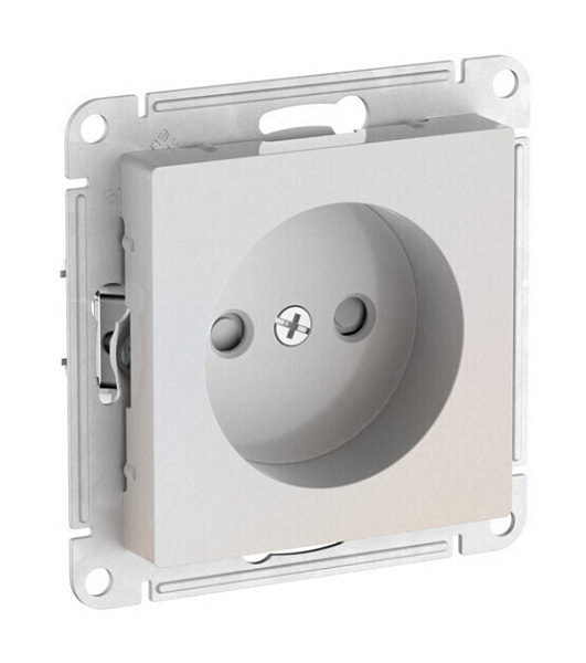 Механизм с быстрозажимными клеммами Systeme Electric (ранее Schneider Electric) серии AtlasDesign в цвете жемчуг розетки одинарной без заземления со штороками подходит для сетей 250 В, на ток 16 А.