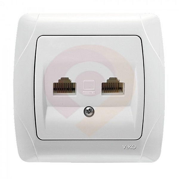 Розетка компьютерная RJ-45 (Cat5E) двухместная скрытой установки 90561034 серии Carmen от VIKO by Panasonic применяется для подключения компьютера к локальной сети.