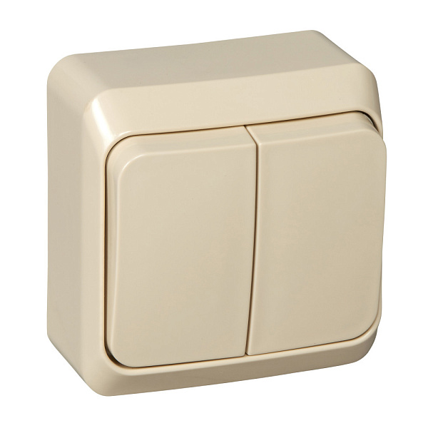 Выключатель Systeme Electric (ранее Schneider Electric) ЭТЮД (кремовый, открытой установки) двухклавишный предназначен для применения в сетях до 250В, на ток до 10А.