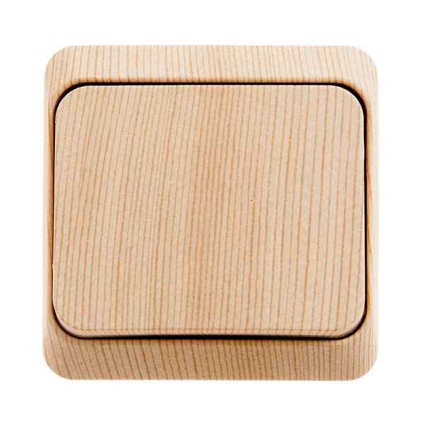 Переключатель Systeme Electric (ранее Schneider Electric) ЭТЮД (сосна, открытой установки) одноклавишный предназначен для применения в сетях до 250В, на ток до 10А.