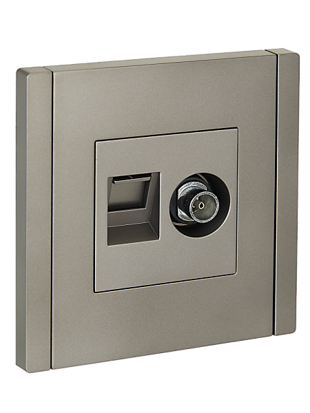 Розетка 1 СП TV+комп.RJ45 кат.6 IEK FP537 Forte&Piano сталь