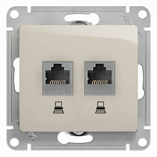 Механизм Systeme Electric (ранее Schneider Electric) серии Glossa (цвет молочный) двойной розетки компьютерной с разъёмом RJ45 категория 5е предназначен для удобного и быстрого подключения вашего компьютера к компьютерной сети.