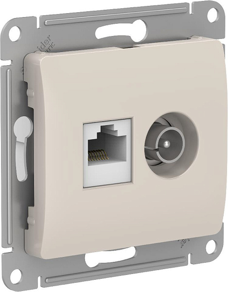 Розетка 1 СП TV+комп.RJ45 кат.5е механизм SE Glossa молочный