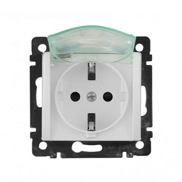Розетка Legrand VALENA, скрытый монтаж, с заземлением, с крышкой, со шторками, белый