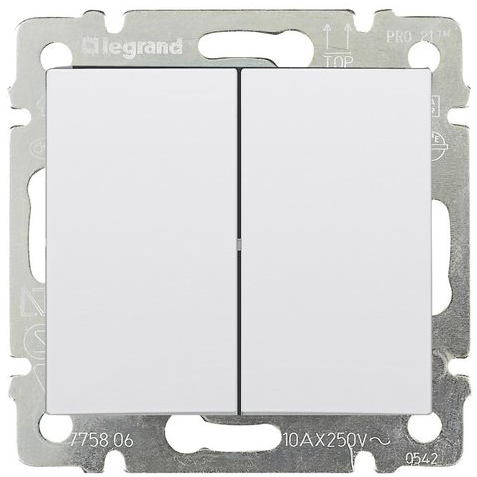 VALENA Выключатель двухклавишный в рамку белый 774405 Legrand/Daccord