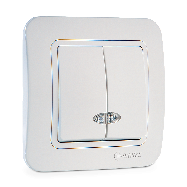 Выключатель 1 СП 10А с подсв. без вставки Makel Lillium белый