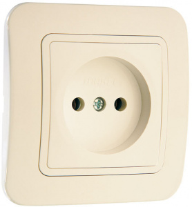 Розетка Makel Lillium одинарная без заземления, скрытой установки, цвет кремовый, без защитных шторок.