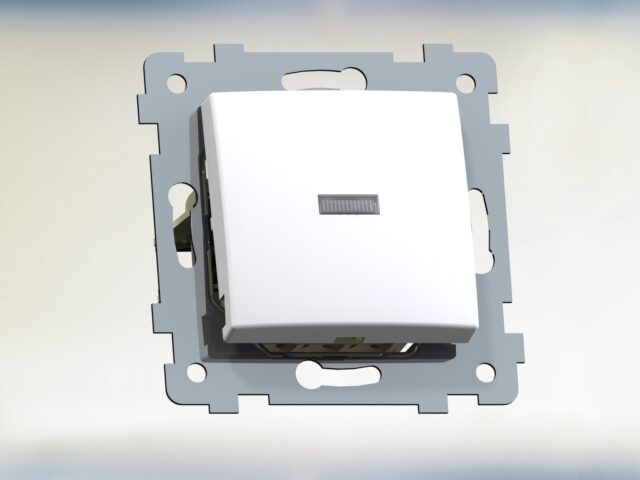 Механизм выключателя одноклавишный со светоиндексацией Номинальный ток — 10А размер 70,6х70,6х47мм