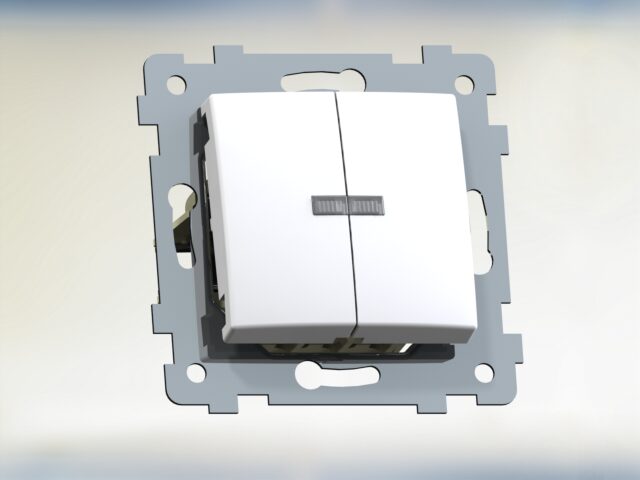Механизм выключателя двухклавишный скрытой установки со светоиндексацией Номинальный ток — 10А размер 70,6х70,6х47мм