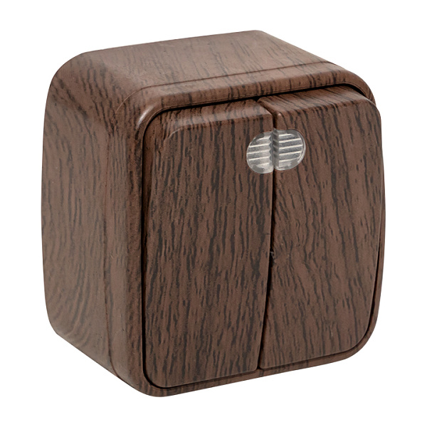 Дополнение к основной серии электроустановочных изделий для открытой проводки «Минск», компания EKF предлагает Вашему вниманию изделия в цвете светлое и темное дерево.