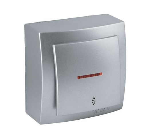 Выключатель 1 ОП 10А проходной с подсв. Nilson Themis Metallic серебро