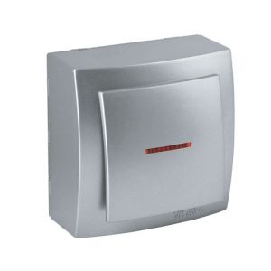 Выключатель 1 ОП 10А с подсв. Nilson Themis Metallic серебро