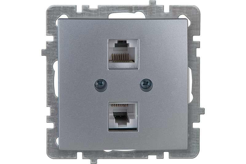 Розетка 1 СП комп. RJ45+RJ45 кат.5е механизм Nilson Touran/Alegra Metallic серебро
