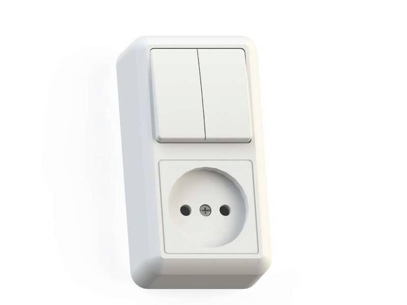 Блок комбинированный выключатель двухклавишный + розетка