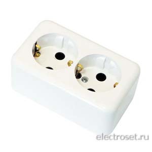 РА16-250 Розетка двухместная с заземляющим контактом открытой установки (без монтажной панели)