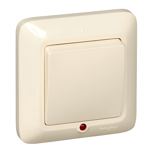 Выключатель одноклавишный Schneider Electric ПРИМА (скрытой установки, цвет слоновая кость) с подсветкой предназначен для сетей до 250 В, на ток до 6 А.