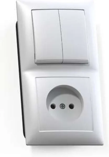 Блок комбинированный выключатель двухклавишный + розетка Номинальный ток: — выключателя — 10А — розетки — 16А размер 80,4×150,4×42,2мм