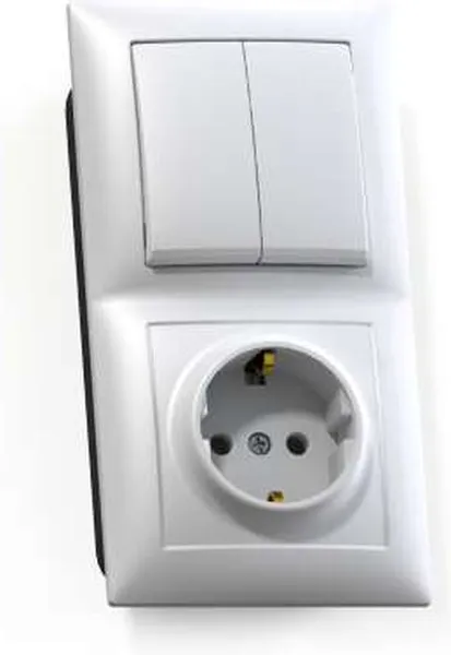 Блок комбинированный выключатель одноклавишный + розетка с заземляющим контактом Номинальный ток: — выключателя — 10А — розетки — 16А размер 80,4×150,4×45,4мм