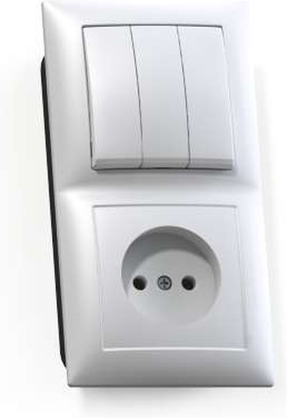 Блок комбинированный выключатель трехклавишный + розетка Номинальный ток: — выключателя — 10А — розетки — 16А размер 80,4×150,4×43,3мм