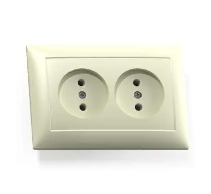 Розетка двухместная Номинальный ток — 16А Размер — 80,4×120,6×33,8 мм цвет слоновая кость