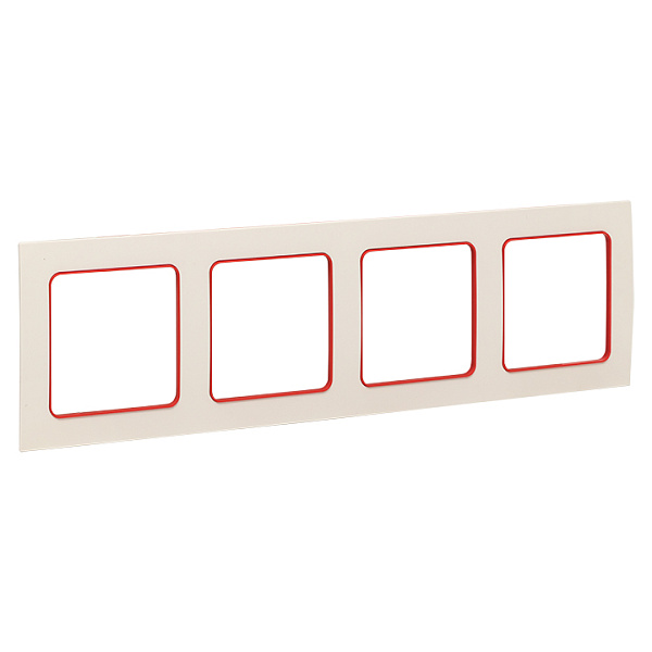 Рамка 4-постовая EKF Стокгольм белая c красной линией
