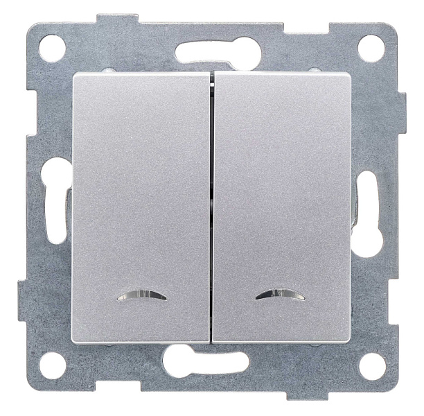 Выключатель 2 СП 10А с подсв. механизм Gusi Electric Ugra серебро
