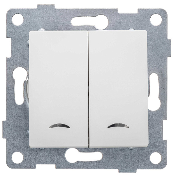 Механизм выключателя двухклавишного со светоиндикацией предназначен для коммутации двух цепей источников освещения.