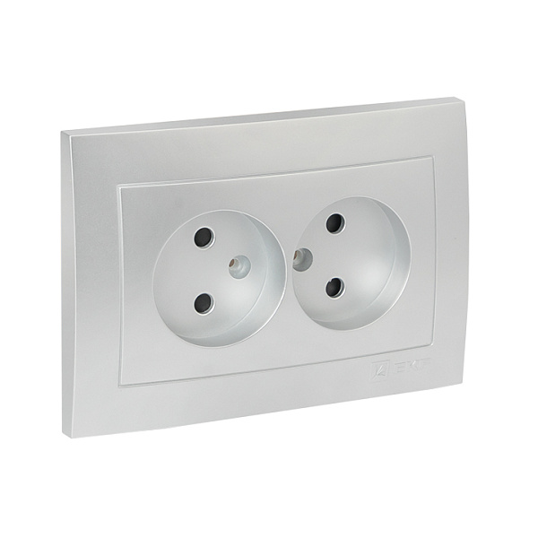 Лицевая панель розетки 2-местной с з/шт EKF Валенсия сталь