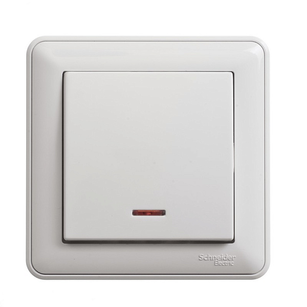 Выключатель Schneider Electric W59 (в сборе, цвет белый) 1-клавишный с подсветкой подходит для сетей 250 В, на ток до 16 А.