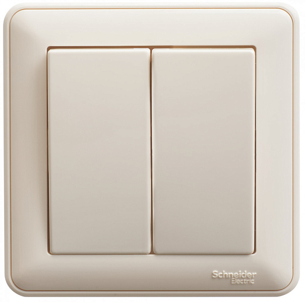 Выключатель Systeme Electric (ранее Schneider Electric) W59 (в сборе, цвет слоновая кость) 2-клавишный подходит для сетей 250 В, на ток до 10 А.