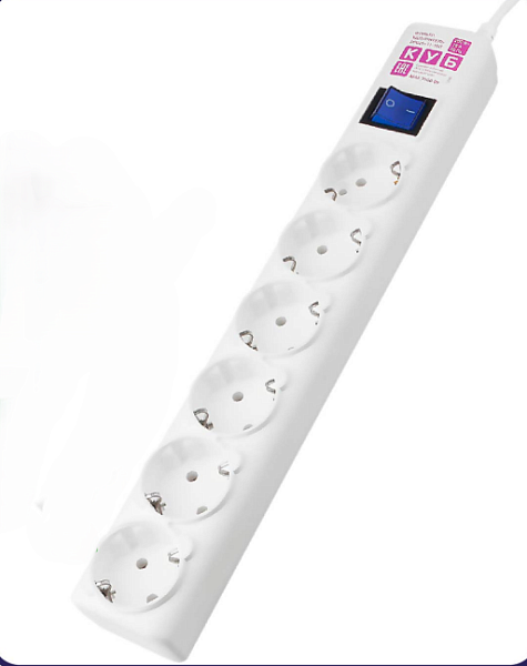 Сетевой фильтр 6*1,9м (5+1) (16А/3,5кВт) с выключателем, с заземлением ПВС 3х1,0мм² Power Cube белый