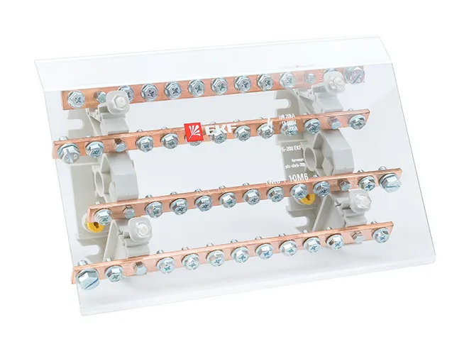 Шинные распределительные блоки ШРБ EKF PROxima применяются в качестве надежных клеммных зажимов при создании упорядоченных систем в распределительных шкафах.