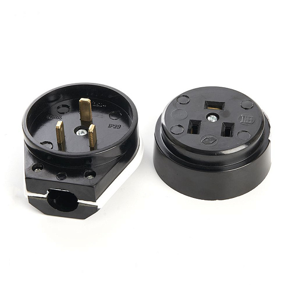 Вилка угловая с розеткой STEKKER PPG32-51-20, с заземлением, тип установки открытый.