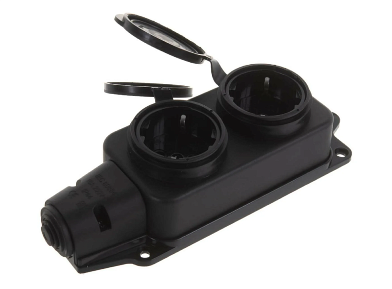 Колодка 2-гн. с з/к с крышкой 16А IP44 (каучук) 250В Agis Profile