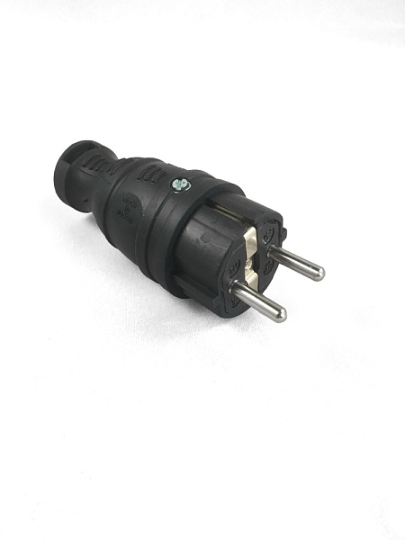 Вилка прямая с заземлением Контактные группы L-N-E: Латунь, толщина 0,5мм Стандарт вилок/розеток: Schuko type F CEE 7/4 Размер штыря вилки: 4,8*19 Номинальное напряжение: 16 A/250 В~ MAX мощность: 3500 Вт MAX Максимальное сечение провода: до 2,5 мм2 ПВС Степень защиты: IP44 Материал корпуса: Каучук (резина)