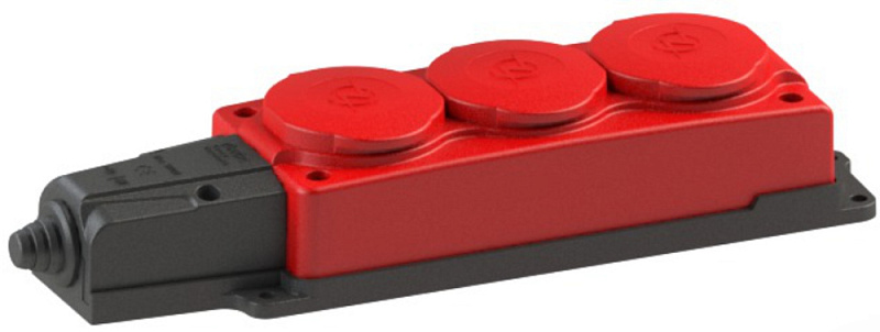 Колодка 3-гн. с з/к с крышкой 16А IP54 (каучук) 250В красный Ne-ad