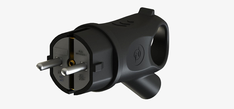 Вилка каучук угловая с кольцом 16А 220В с з/к Ne-ad черный