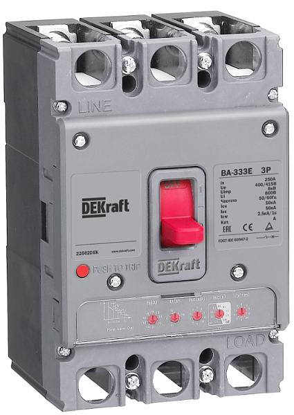 Автоматические выключатели серии ВА-350Е предназначены для использования в силовых распределительных цепях переменного тока напряжением до 415 В для ввода и распределения электрической энергии, а также защиты цепей оборудования от повреждений, которые могут возникнуть из-за перегрузок и токов короткого замыкания.
