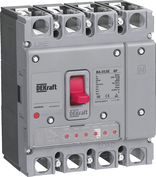 Выключатель автоматический 4P 160А 70кА с электрон. расц. ВА-353E DEKraft