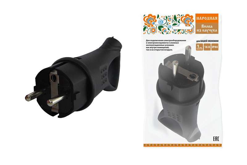 Вилка каучук прямая 16А 250В с з/к IP44 с ушком Народная